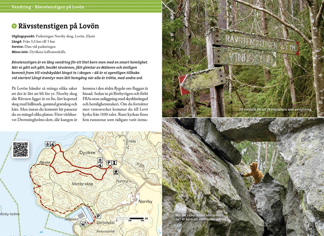 Donut-Plätze für kleine Stockholmer Dies ist ein Leitfaden zum familienfreundlichen Leben im Freien rund um Stockholm. Sie erhalten Vorschläge für einigermaßen lange Wanderungen, mit oder ohne Kinderwagen, einen Führer zu den Freiluftgärten rund um die Stadt, Tipps zu spannenden Aussichtsbergen, malerischen Badeplätzen, wo normalerweise Eisbahnen gepflügt werden und wo Sie Kanus mieten können. Das Buch richtet sich in erster Linie an Familien mit Kindern im Alter von 0–7 Jahren, aber natürlich können auch ältere Kinder an den Touren teilnehmen. Mit kleinen Kindern in der Natur unterwegs zu sein macht Spaß, kann aber gleichzeitig auch eine Herausforderung sein. Zusätzlich zu den Tourenvorschlägen erhalten Sie daher auch viele clevere Tipps und Ratschläge, wie Sie Ihre Touren für alle Beteiligten lohnenswerter gestalten können. Das Buch wurde von Emma V Larsson und Jonas Westbom geschrieben. Emma ist freiberufliche Journalistin und Autorin und liebt die Natur. Sie hat mehrere beliebte Kinderbücher mit einem Naturthema geschrieben. Jonas Westbom beschäftigt sich mit der Kommunikation bei den Scouts, während er ein fleißiges Instagram-Profil mit Fokus auf das Leben im Freien mit kleinen und großen Kindern betreibt.