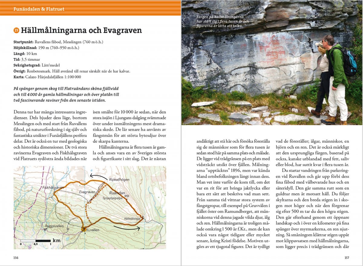 Grenzenloses Wandern Im westlichen Härjedalen sind die Bedingungen perfekt für leichtes Bergwandern. Oftmals beginnt die Wanderung an der Baumgrenze oder sogar oben am Calf Mountain, wo man bei jedem Wetter sofort freie Flächen genießen kann. Die Wanderungen des Buches führen in der Gegend von Helags im Norden bis Rogen im Süden und von Sonfjället im Osten bis Røros im Westen. Alle Touren können tagsüber ab Funäsdalen durchgeführt werden. Als Bergwanderer sollten Sie sich hier keine Sorgen um die Grenze zwischen Norwegen und Schweden machen. Etwa ein Viertel der Touren des Buches finden in den Bergen zwischen der Landesgrenze und Røros in Norwegen statt, einer fantastischen Bergregion, die sowohl bei Touristen als auch bei Einheimischen überraschend unbekannt ist. Zusätzlich zu den Tourenvorschlägen können Sie sich über Natur und Bergpflanzen, Kultur und Geschichte informieren. Außerdem erhalten Sie Tipps zu vielen kürzeren Spaziergängen und Anregungen für spannende, etwas längere Ausflüge in Norwegen.