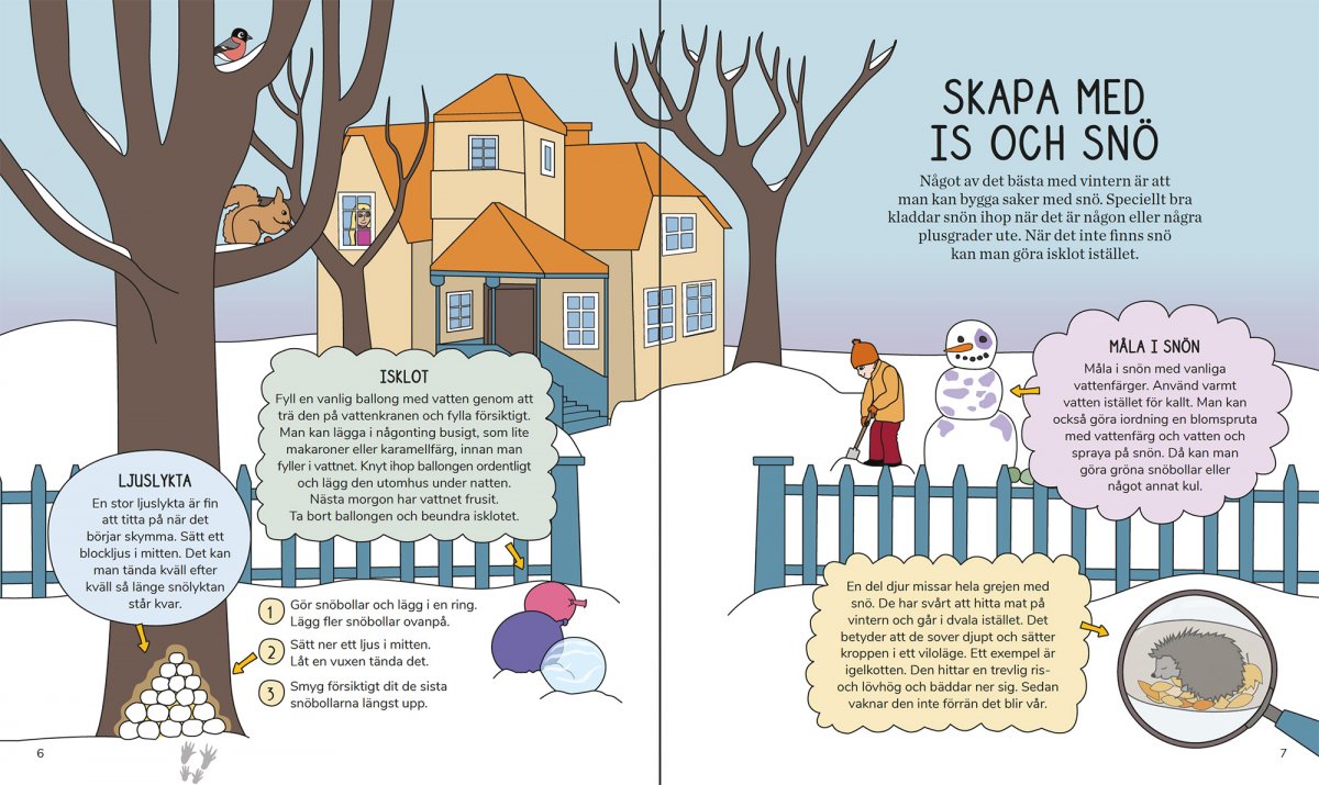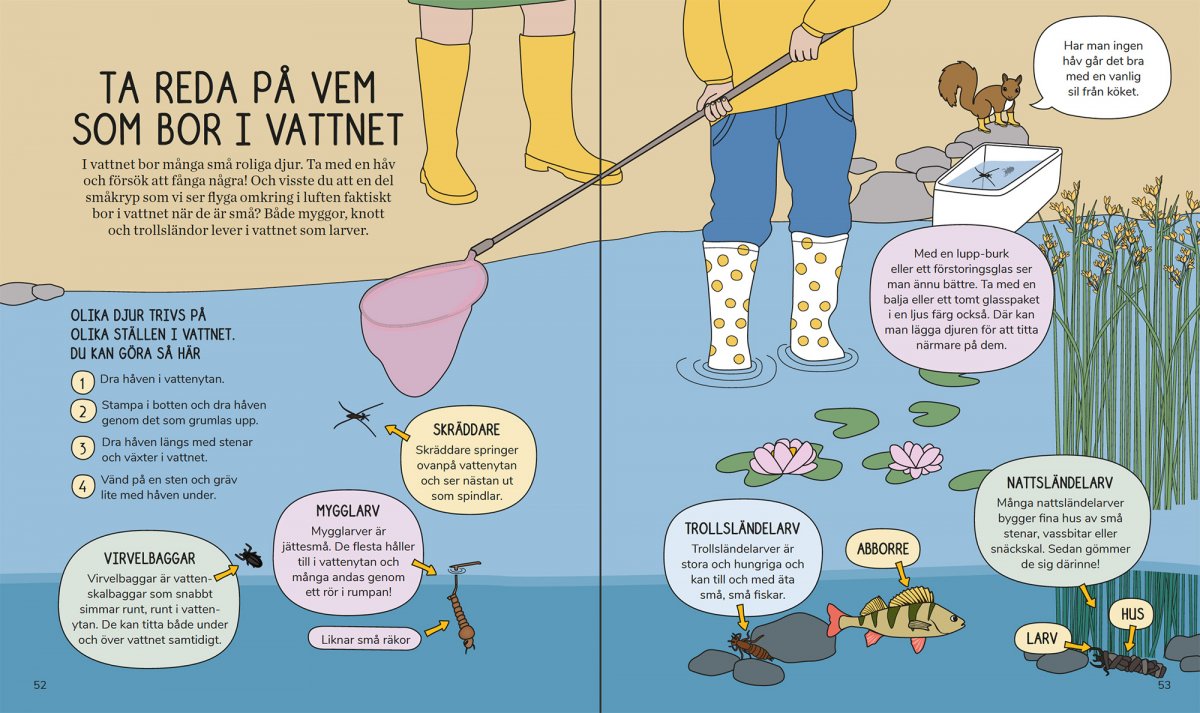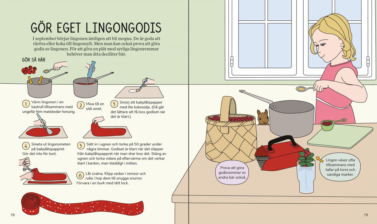 Dieses Buch steckt voller Ideen und Tipps für Outdoor-Aktivitäten, die Sie mit Ihren Kindern unternehmen können. Das Buch ist in vier Kapitel unterteilt, je nachdem, welche Aktivitäten für jede Jahreszeit am besten geeignet sind, obwohl zu jeder Jahreszeit viel getan werden kann. Neben allen Spielen, Rezepten, Anbautipps und Basteltipps erfahren Sie viel Wissenswertes über die Natur von Groß und Klein. Karin Runesson ist Biologin und freie Autorin. Sie hat zwei Kinder und ist Leiterin der Kinder- und Familienaktivität Natursnokarna des Naturskyddsföreningen. Emilie Bergman arbeitet als Illustratorin und Grafikdesignerin. Sie möchte bewusst kommunizieren und bringt stets eine Reflexion über Geschlecht, Normen, Gleichberechtigung, Demokratie und Umwelt mit. „Wenn ich mich entscheiden müsste, würde das Kinder-Outdoor-Buch in allen Haushalten mit Kindern liegen“ Rezension des Buches auf Natursidan. Anzahl der Seiten: 85