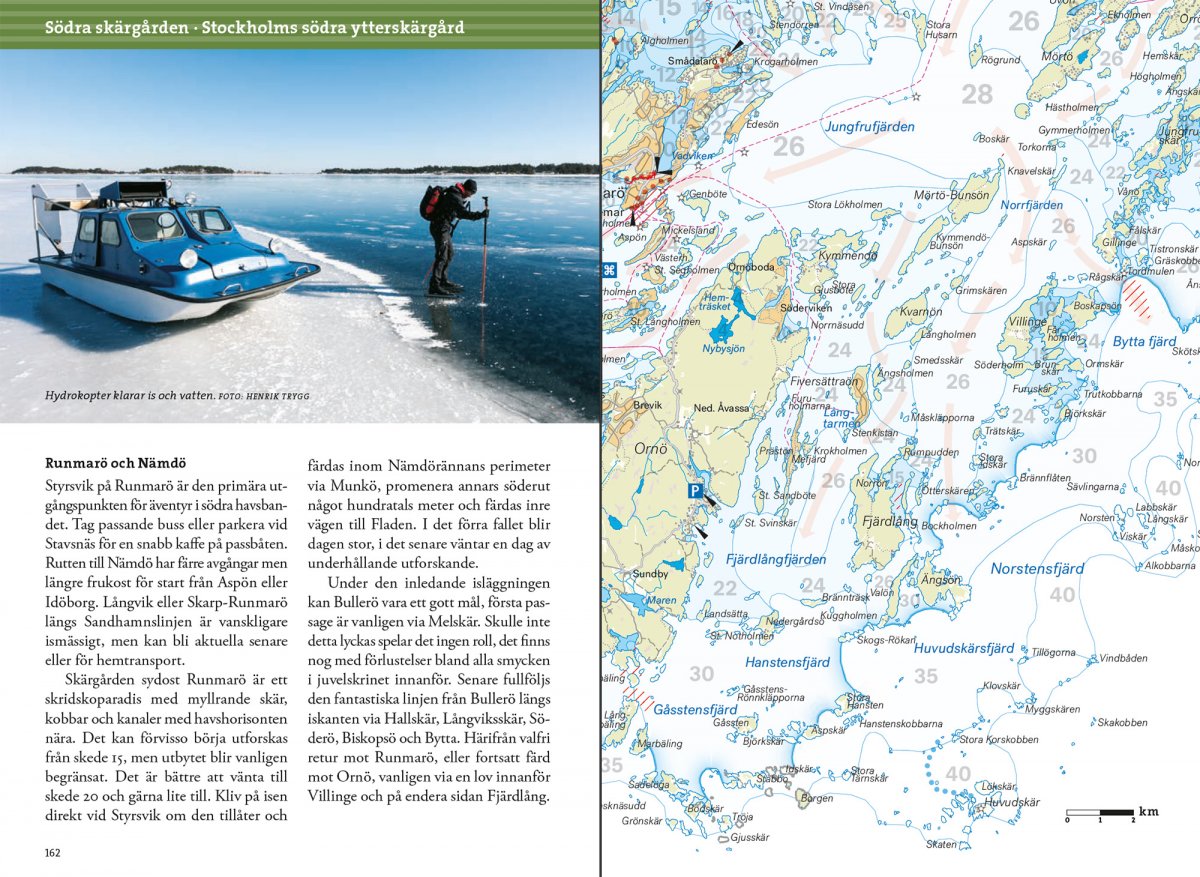 Der Stockholmer Archipel ist einzigartig auf der Welt. Nur in der Ostsee kann man über endlose Eisflächen zwischen vereinzelten Inselgruppen gleiten, die seltsam am Horizont schweben. Nur hier ist der Salzgehalt genau richtig, die Lage nördlich genug für die Eisbildung, aber ohne übermäßige Kälte oder zu viel Schnee, während die Inseln das Eis verankern, damit es nicht wegdriftet. Der Autor Mårten Ajne hat mehr als fünfzig Jahre Eis- und Wetterdaten verarbeitet und diese mit seinen eigenen Erfahrungen und denen der Eislaufvereine kombiniert. Das Ergebnis zeigt, wie der Stockholmer Archipel Schritt für Schritt angelegt wird, dargestellt für 39 verschiedene Gebiete von Oxelösund im Süden bis Skutskär im Norden. Ein großer Schwerpunkt liegt auf den speziell angefertigten Karten des Buches, die die geschätzte Gefrierordnung in nummerierten und farbigen Zonen, Schiffskanälen, Oberflächenströmungen, Strömungen, Zuflüssen, Furchen, Aufbruchgrenzen und anderen Eiswarnungen anzeigen. Darüber hinaus erhält der Leser Anregungen für Fahrten zu den verschiedenen Etappen des Eislegens mit geeigneten Ausgangspunkten, Sehenswürdigkeiten, Rastplätzen und Anschlusswanderungen. Mårten Ajne läuft seit vierzig Jahren Schlittschuh, und zwar in jeder Ecke der Uppland- und Sörmland-Inseln. Er verfügt über mehr als zwanzig Jahre Erfahrung als Eisreporter und Guide für den Stockholmer Skridskoseglarklubb. Zuvor hat Mårten Ajne Eislaufführer für Mälaren und die Seen im östlichen Svealand, das poetische und schöne Bildband Vintervatten und das Nachschlagewerk Stora boken om långfärdsskridsko geschrieben. Skrinnarens Führer zu den Stockholmer Schären ist Teil einer Reihe von drei Büchern, die die Eislaufgewässer rund um Mälardalen, Stockholm und die Schären an der Ostküste beschreiben.
