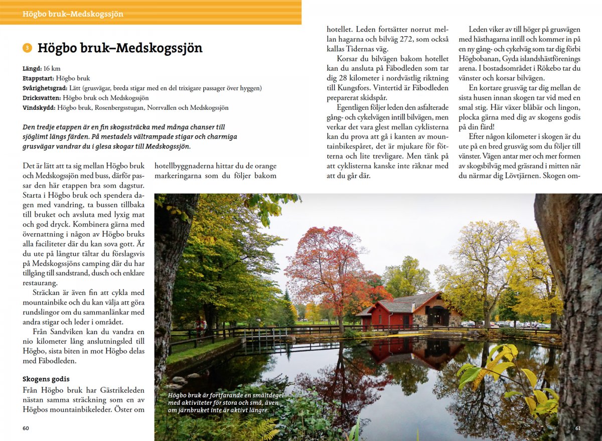 Der Gästrikeleden führt Sie zu mehreren der schönsten Naturgebiete Gästriklands. Gleichzeitig bewegen Sie sich durch einen faszinierenden Teil der schwedischen Industriegeschichte. Die Spuren sind überall sichtbar – Bergwerksgruben, Kohlengruben, Hochöfen, Hütten. Rund um einige der Mühlenumgebungen gibt es noch heute Unternehmen, während andere langsam von der Natur zurückerobert werden. Dieses Buch beschreibt die 290 Kilometer des Weges, aufgeteilt in 17 Etappen. Außerdem erhalten Sie Tipps für Tagesausflüge, mit denen Sie das Beste, was der Wanderweg zu bieten hat, ganz einfach erleben können. Das Buch ist außerdem voller Fakten und Geschichten über die Orte und Menschen, die die Entwicklung der Landschaft beeinflusst haben. Die Autorin Gunnika Isaksson-Lutteman ist freiberufliche Autorin und Fotografin. Zuvor hat sie die Bücher Vandra Roslagsleden und Vandra Upplandsleden geschrieben.