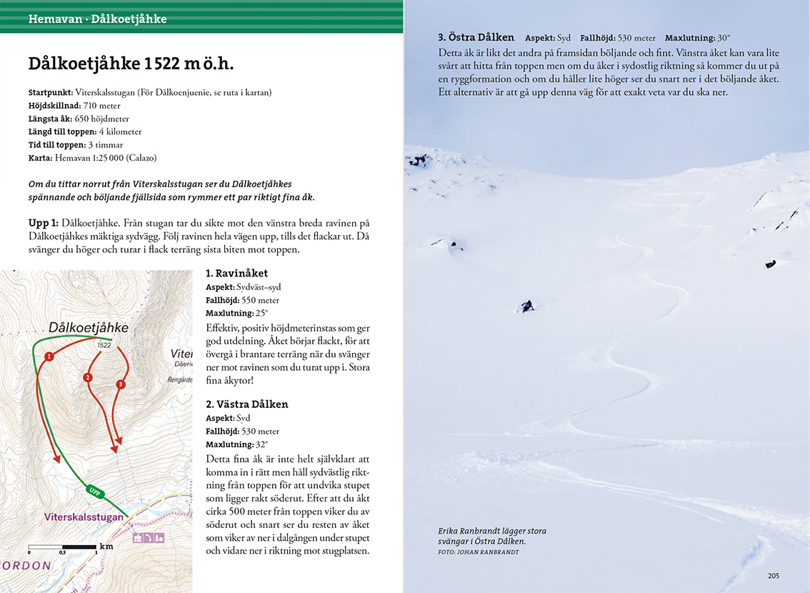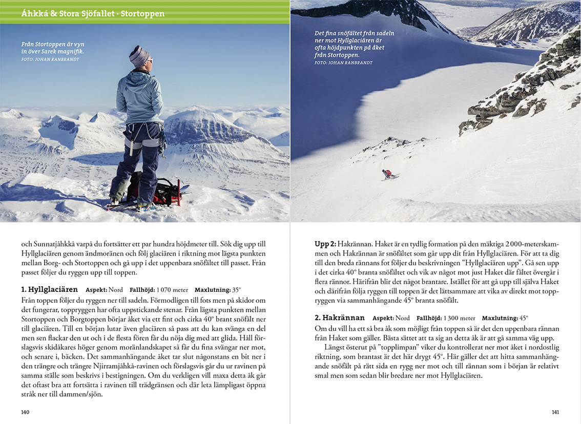 Im Buch werden die schwedischen Berge in 15 Top-Wandergebiete unterteilt, von denen jedes seinen eigenen, einzigartigen Charakter hat. Hier finden Sie einfache Gipfel, die direkt vor der Tür der Bergstation liegen, aber auch jede Menge Möglichkeiten für alle, die sich mit Steigeisen, Seil und Eispickel auf steilere Abenteuer einlassen möchten.