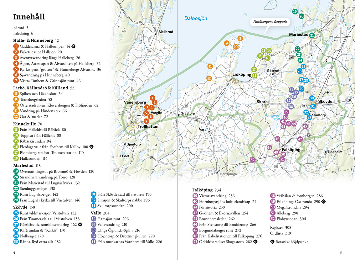 Die Landschaft zwischen Vänern und Vättern ist voller geologischer Sehenswürdigkeiten, historischer Überreste und botanisch interessanter Umgebungen. Die meisten der 52 Wanderungen im Buch finden im Geopark Platåbergen statt – Schwedens erstem globalen Geopark der Unesco. Die Wanderungen führen Sie nah an die einzigartigen Plateauberge heran, die jeweils ihren ganz eigenen Charakter haben.