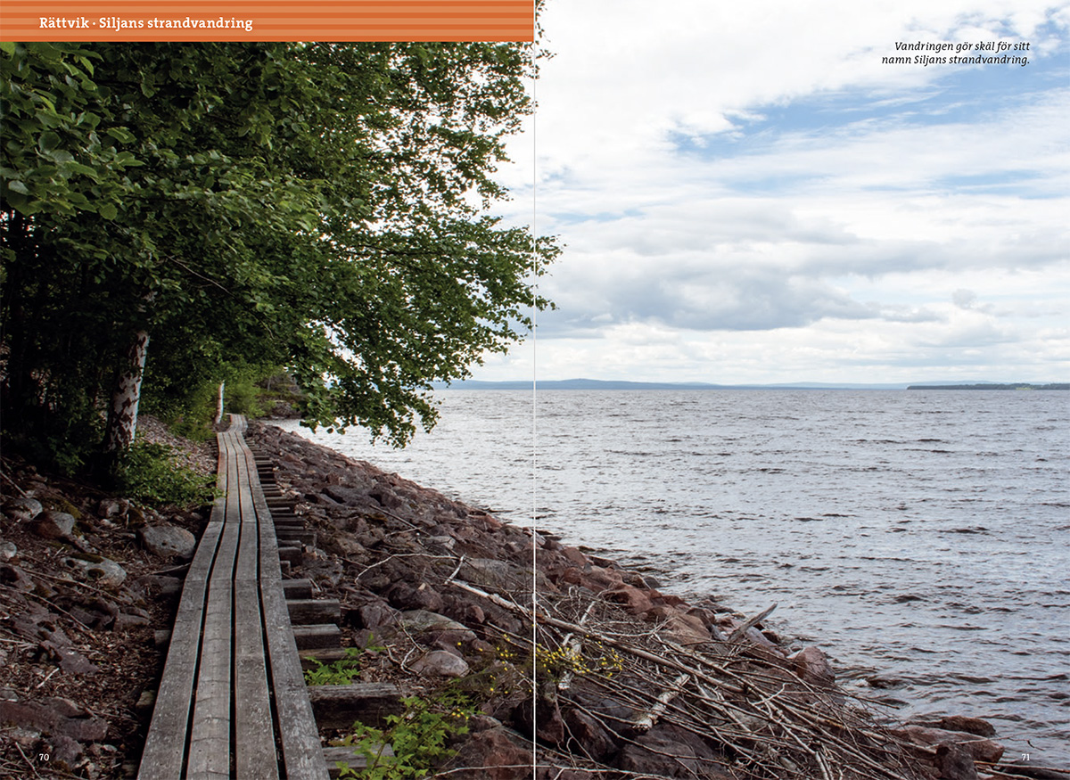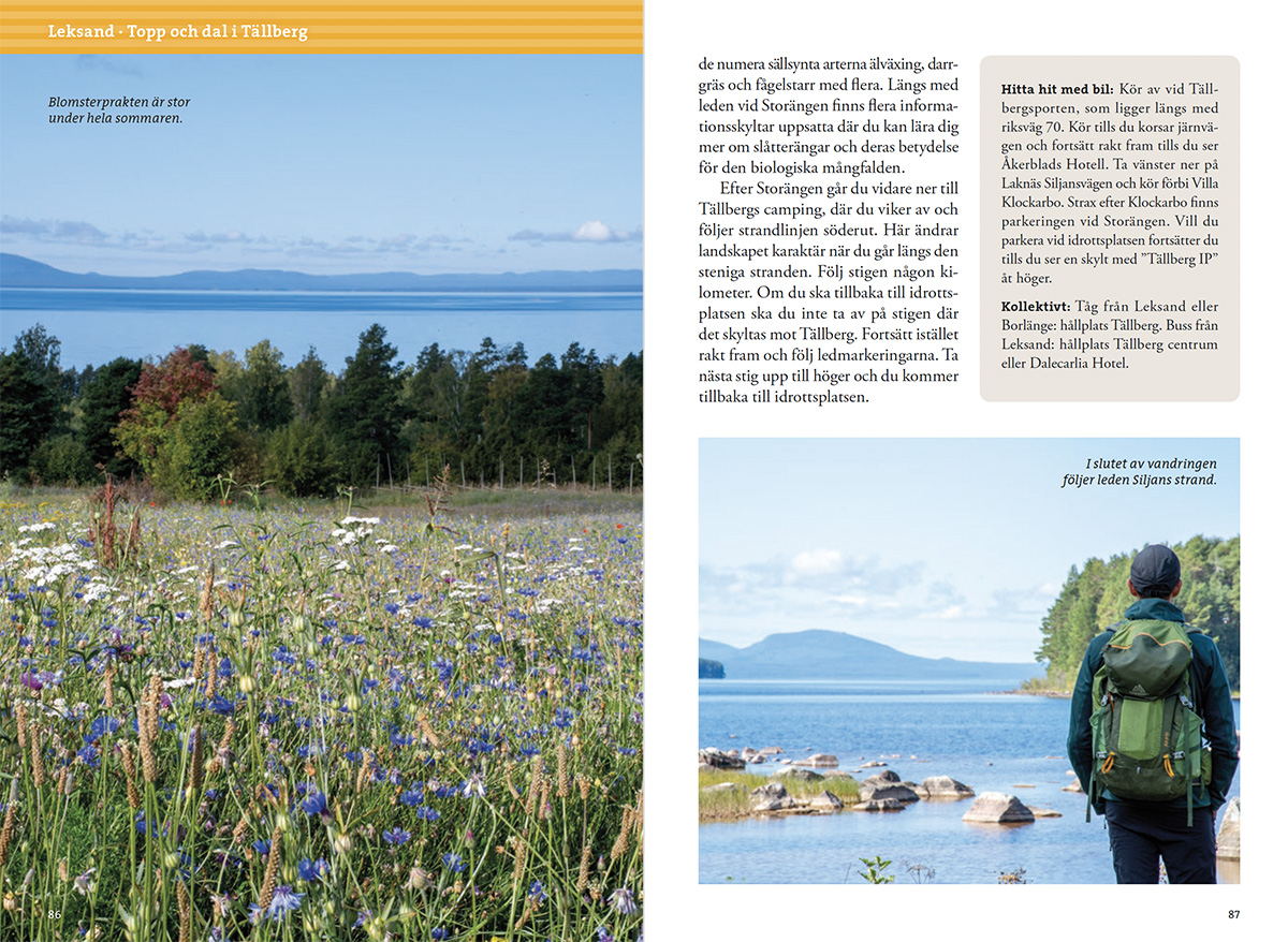 I den här boken beskrivs 35 vandringar som du når från olika utgångspunkter kring Orsa, Mora, Rättvik eller Leksand. Turförslagens längd varierar mellan 2 och 60 kilometer. Vissa turer är rejält kuperade och tar hela dagen, medan andra går på plant underlag och passar utmärkt som en kort utflykt. Ett kapitel i boken behandlar Siljansleden och beskriver några fina övernattningsturer längs leden.