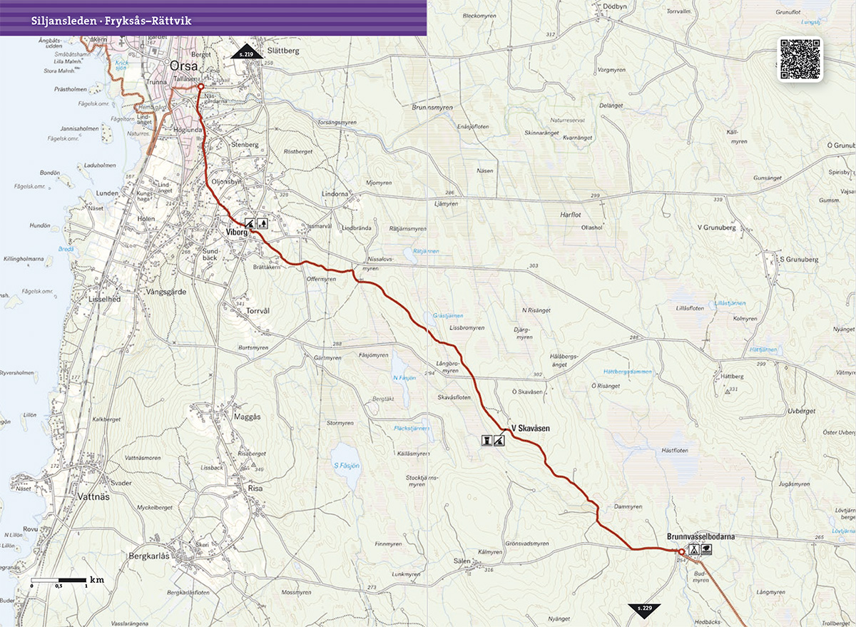 Varje karta i denna bok är försedd med en QR-kod. Skanna koden med mobilkameran så kan du enkelt följa turförslaget i telefonen.