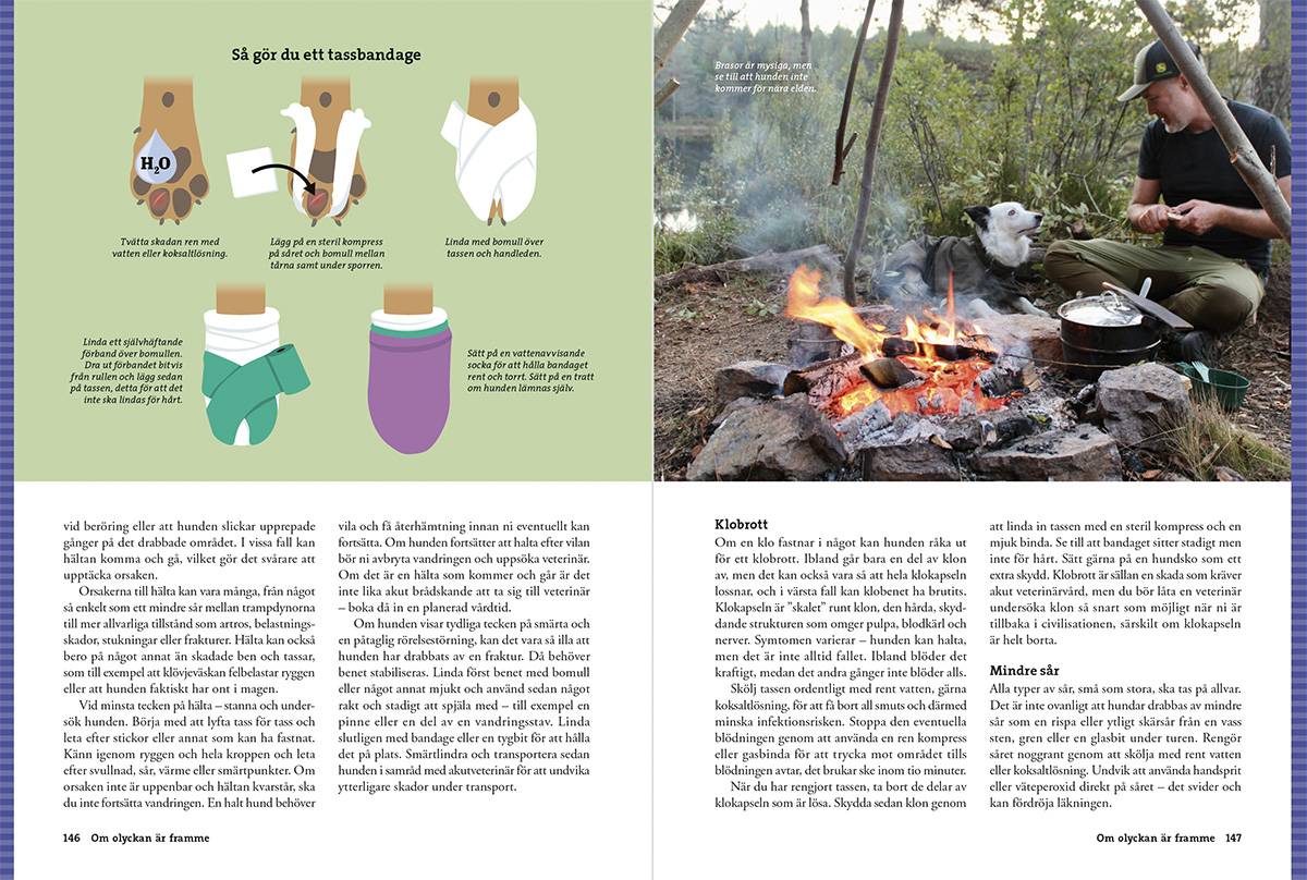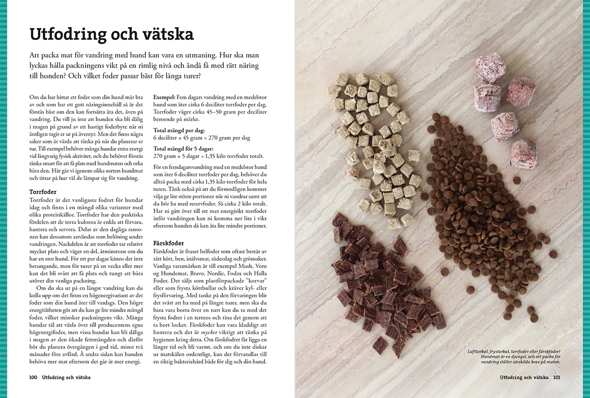 Vandra med hund är en omfattande handbok som guidar dig genom de vanligaste frågorna inför turen. Kan hunden också bära packning? Hur lär man den att komma till ro i tältet – eller i en stuga bland andra vandrare? Och hur förbereder man sig inför en längre vandring? Här får du veta vad som är viktigt att tänka på, från planering av hundens mat till hur ni kan minska risken för skador.