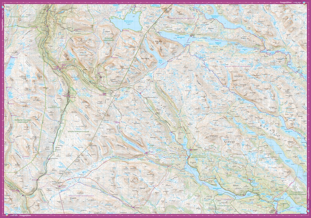 Diese Karte deckt die Arjeplogsfjällen von Mavas und Kvikkjokk im Norden bis Nasafjäll und Jäckkvik im Süden ab. Die Kungsleden-Strecke zwischen Kvikkjokk und Jäckkvik ist in der Karte enthalten. Teile der Nationalparks Junkerdal und Saltfjellet-Svartisen in Norwegen sind enthalten.