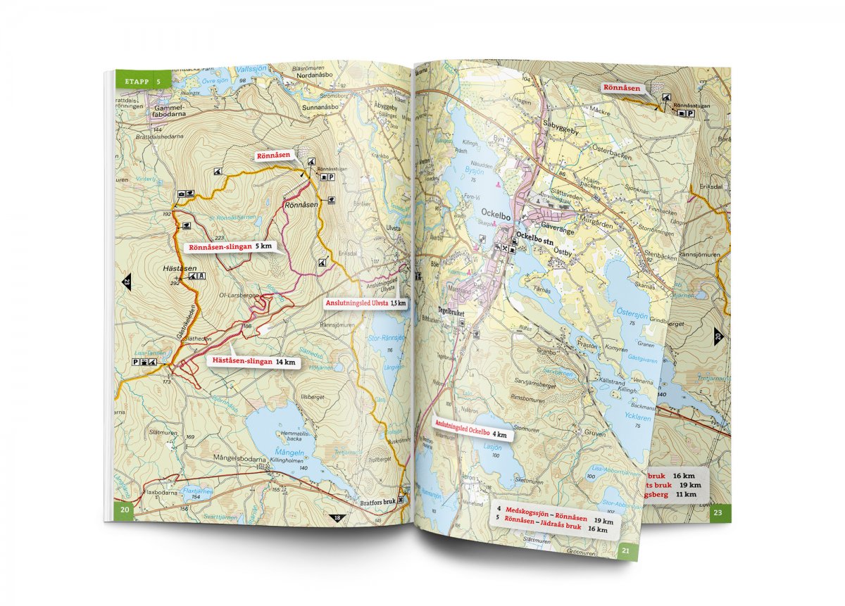 Zum ersten Mal werden Etappenkarten des gesamten Gästrikeleden an einem Ort gesammelt. Speziell entwickelte Geländekarten im Maßstab 1:50.000 werden im handlichen Buchformat präsentiert. Etappenstarts, Parkplätze, Unterkünfte, Bushaltestellen und mehr sind auf der Karte übersichtlich markiert. Wer Tipps zu den schönsten Etappen und konkrete Tourenvorschläge möchte, dem können wir unseren Reiseführer Vandra Gästrikeleden ans Herz legen.