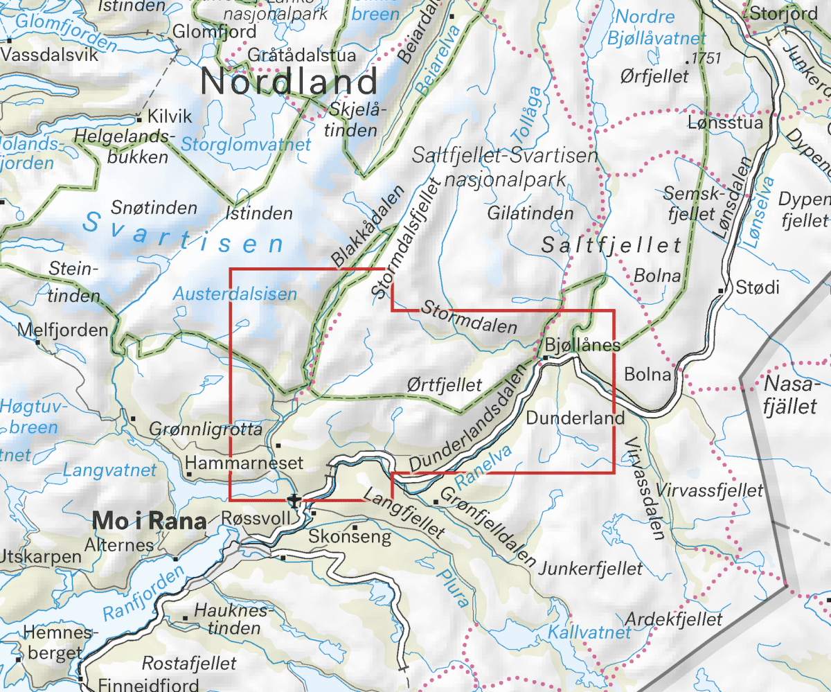 Høyfjellskart Røvassdalen & Dunderlandsdalen 1:25.000