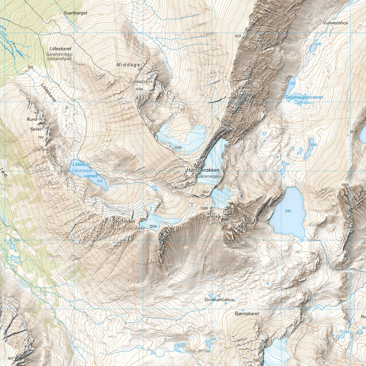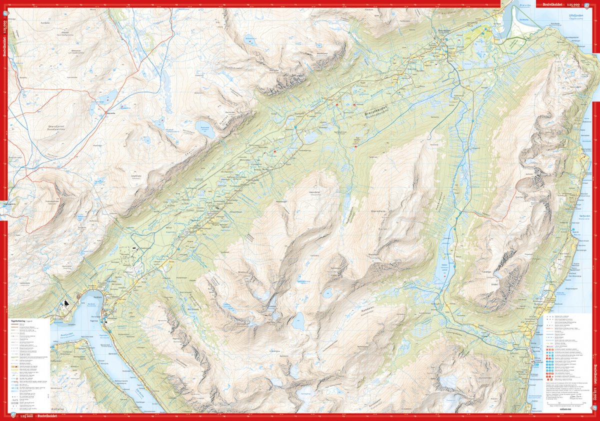 Høyfjellskart Tromsø: Breivikeidet Laksvatn 1:25.000
