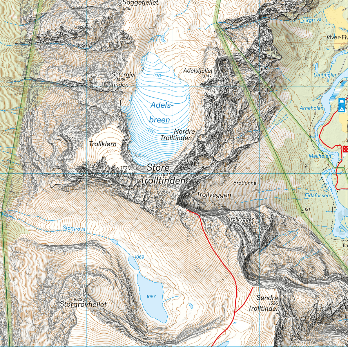 Høyfjellskart Romsdalen: Trolltinden & Høgstolen 1:25 000