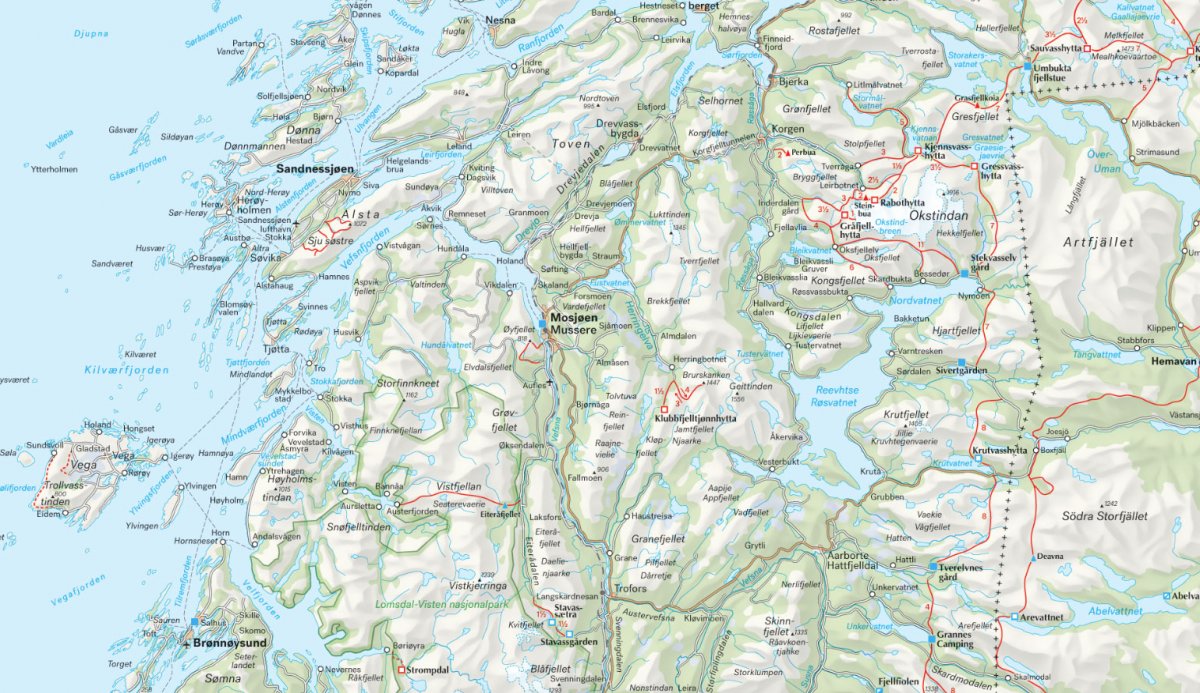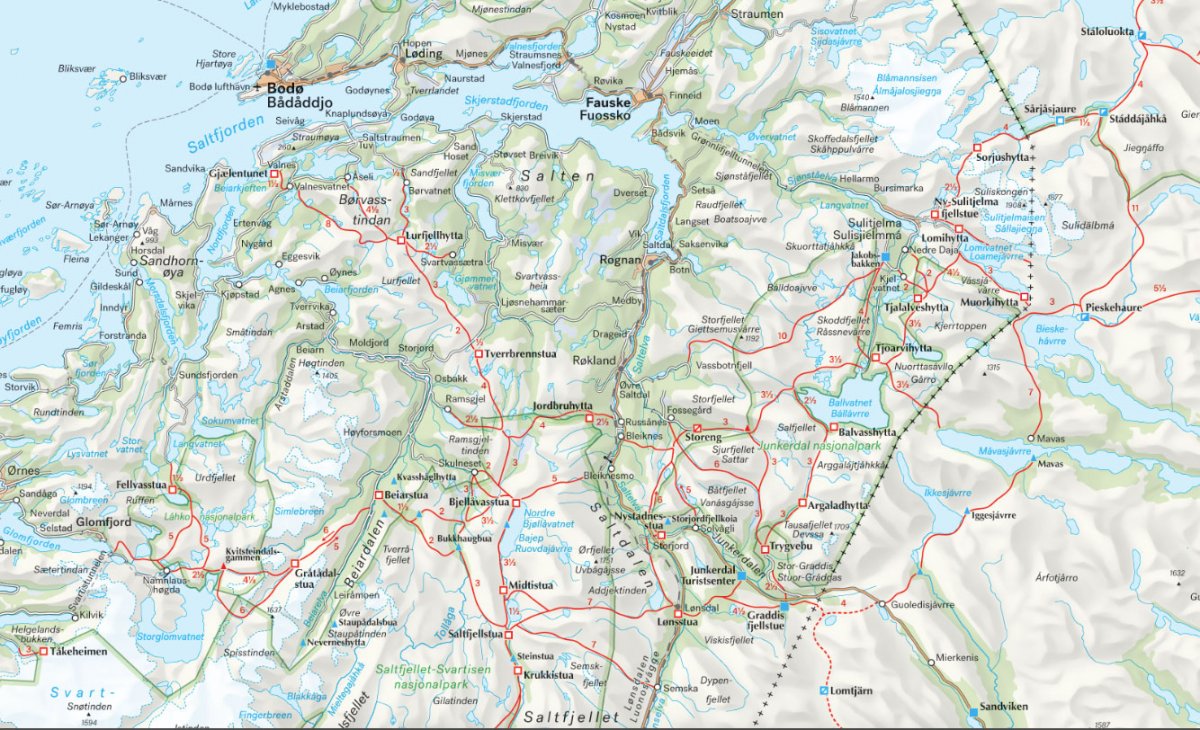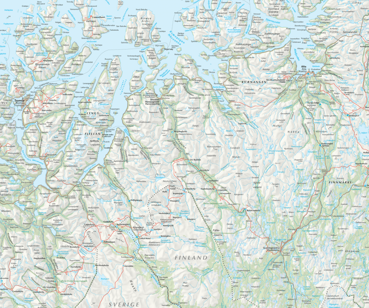 Dette oversiktskartet gjør det enklere å planlegge fotturer i skog og fjell. Her finner du alle DNT-hytter, andre overnattingssteder og et stort utvalg av stier. Kartet egner seg kun til planlegging; til selve turen trenger du et detaljert turkart.