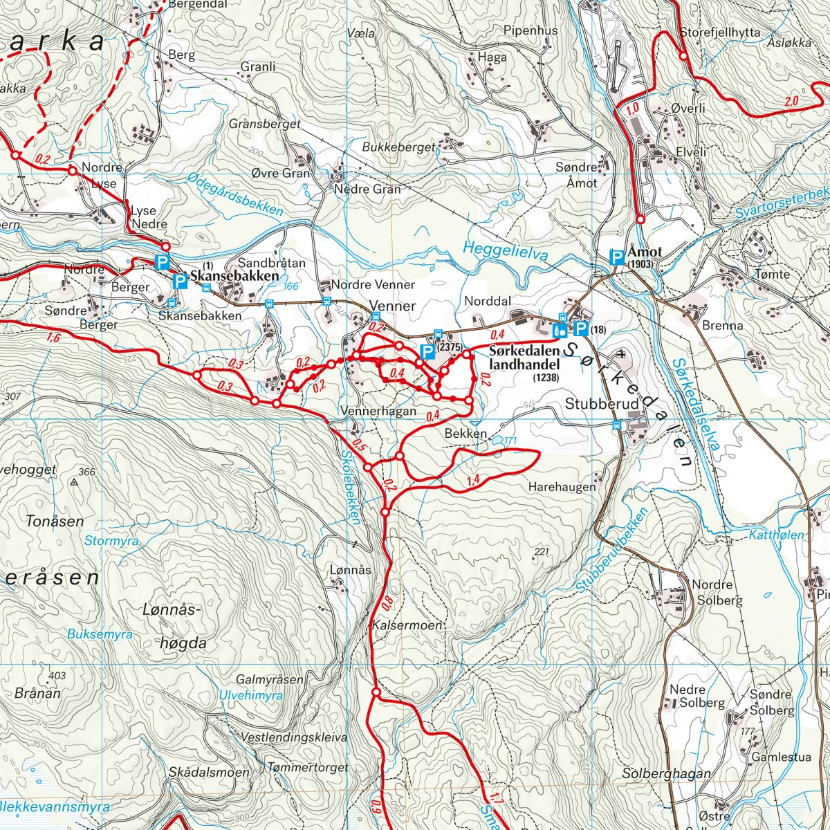 Varje karta visar tydligt spårtyper och avståndsinformation, samt användbara tillägg som parkeringsplatser, stugor och serveringsställen. Informationen är anpassad för enkel samordning med realtidsuppdateringar på Skiforeningens webbplats. Kartorna bygger på terrängdata från laserskanning från flyg, vilket säkerställer enastående detaljrikedom och noggrannhet.