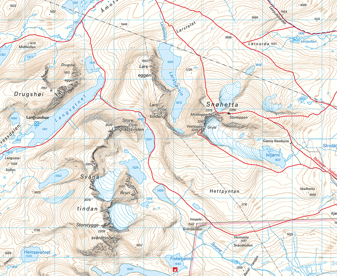 Calazo Publishing hat eine neue Generation topografischer Karten für Norwegen eingeführt. Diese Karten basieren auf Geländedaten aus luftgestütztem Laserscanning (LIDAR) und bieten ein Detailniveau, das dem anderer Karten auf dem Markt überlegen ist. Wir investieren außerdem erheblichen Aufwand in die Analyse von Luftbildern, um den Verlauf markierter Wanderwege präzise zu aktualisieren und zu korrigieren sowie Pfade hinzuzufügen, die in offiziellen Datenbanken nicht erfasst sind. Alle unsere Karten werden auf Tyvek® gedruckt – einem Material, das wasserfest und äußerst reißfest ist.