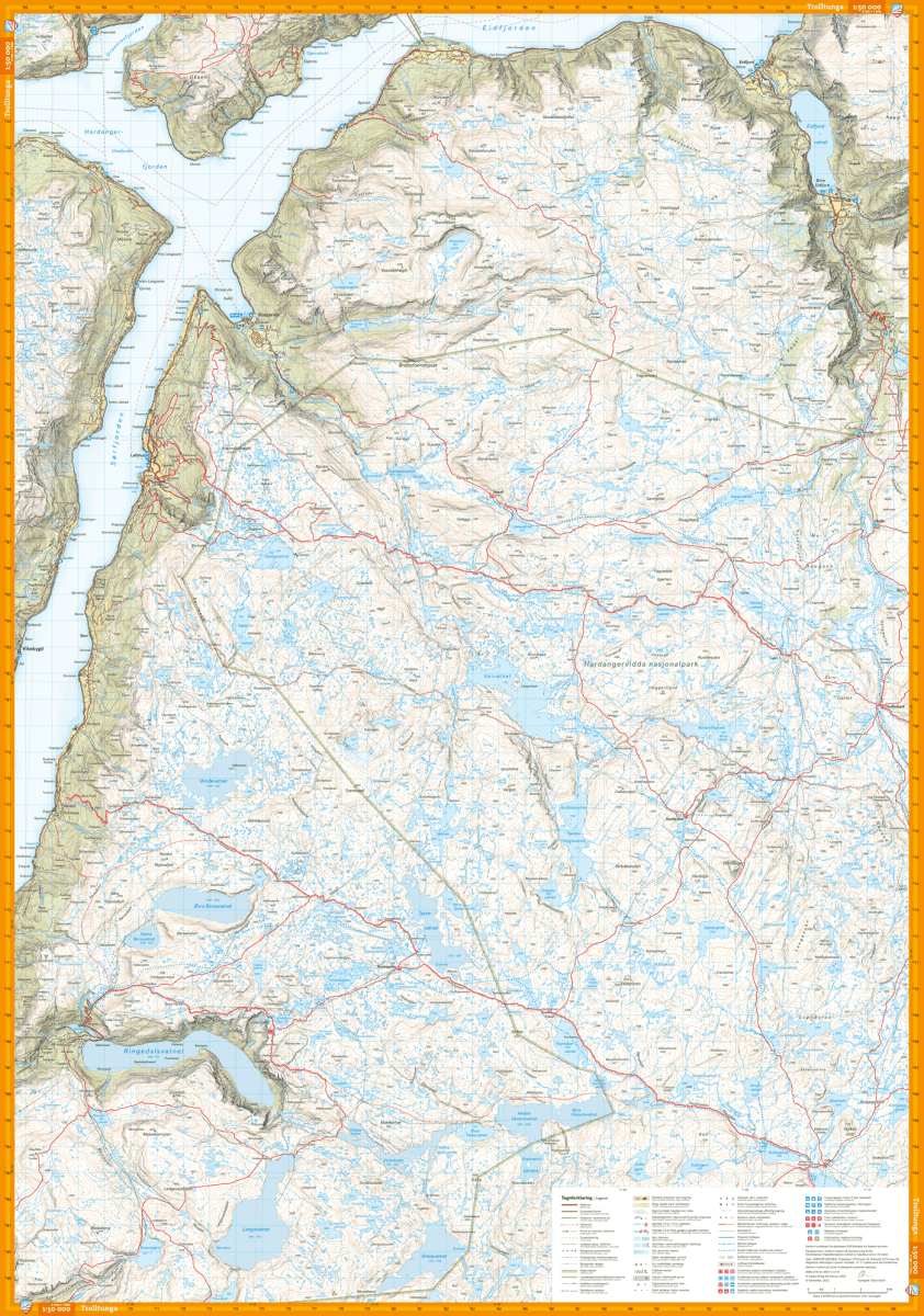 Turkart Hardangervidda vest, Trolltunga & Folgefonna 1:50 000
