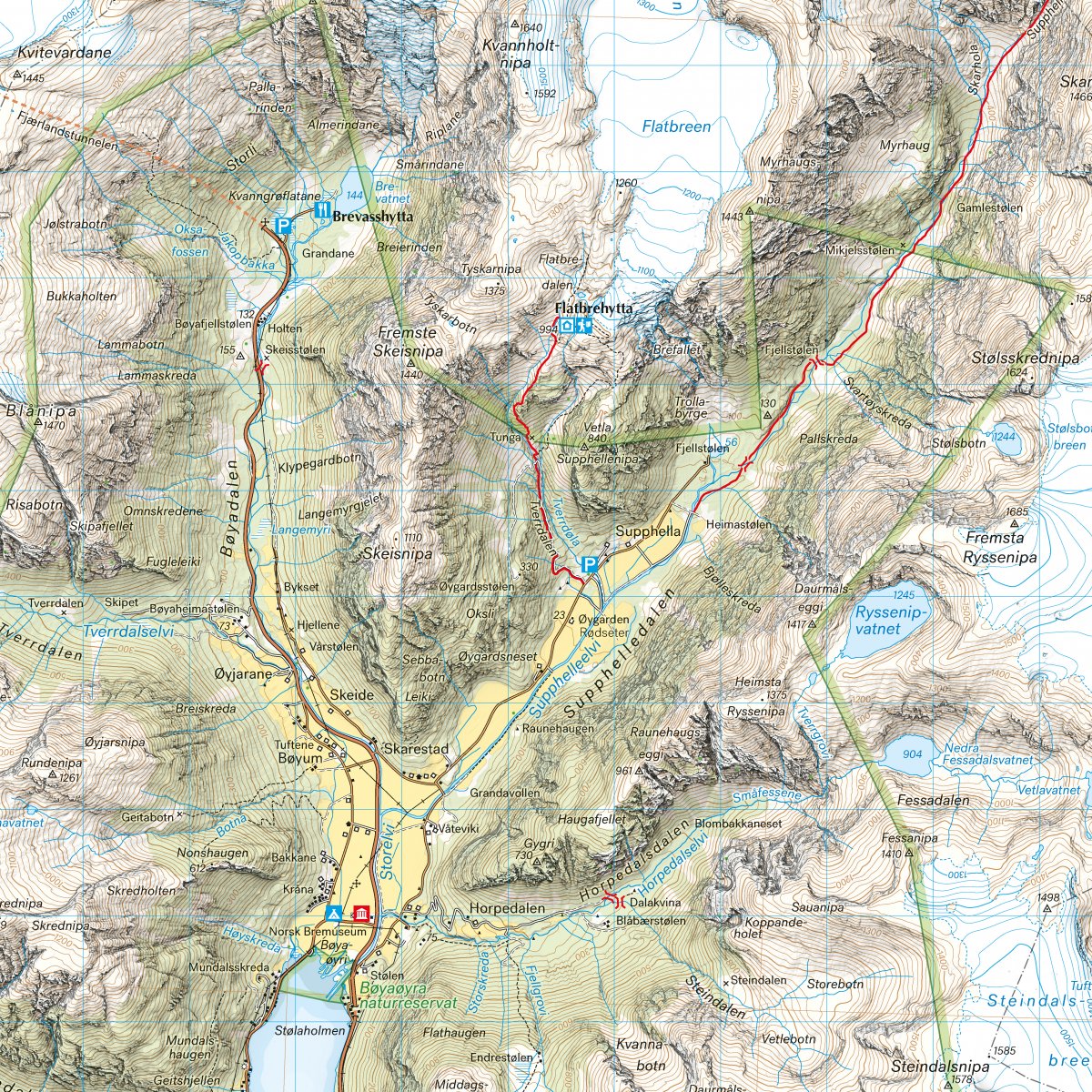 Calazo Publishing hat eine neue Generation topografischer Karten für Norwegen eingeführt. Diese Karten basieren auf Geländedaten aus luftgestütztem Laserscanning (LIDAR) und bieten ein Detailniveau, das dem anderer Karten auf dem Markt überlegen ist. Wir investieren außerdem erheblichen Aufwand in die Analyse von Luftbildern, um den Verlauf markierter Wanderwege präzise zu aktualisieren und zu korrigieren sowie Pfade hinzuzufügen, die in offiziellen Datenbanken nicht erfasst sind. Alle unsere Karten werden auf Tyvek® gedruckt – einem Material, das wasserfest und äußerst reißfest ist.