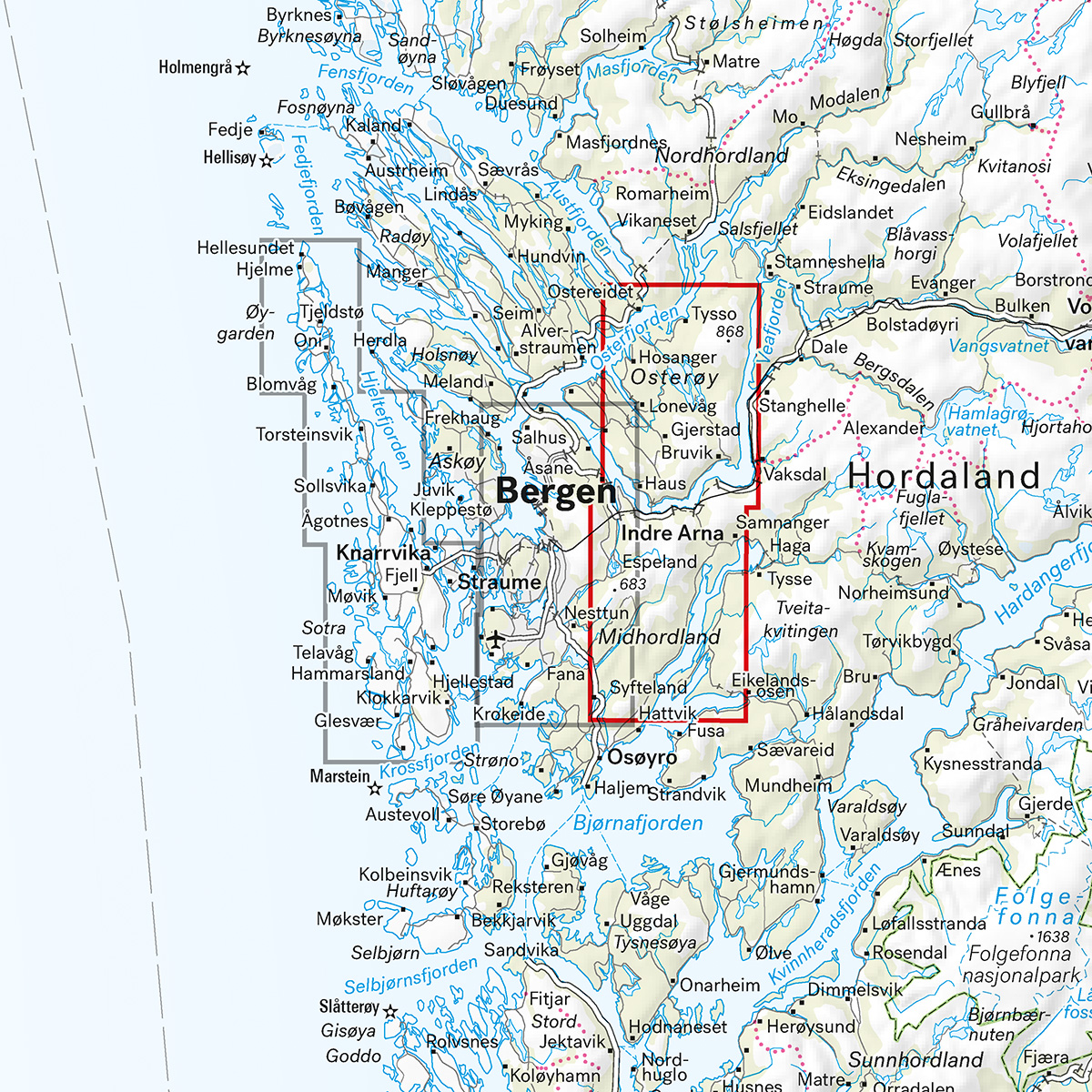 Stikart Gullfjellet & Osterøy 1:25 000