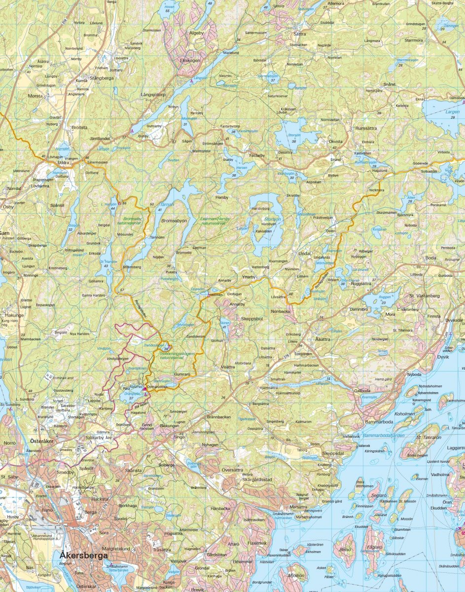 Wir haben zwei Kartenblätter der Region Stockholm mit Fokus auf das Leben im Freien entwickelt. Neben aktualisierten Informationen über die Upplandsleden-Route nach Sigtuna und den Roslagsleden nach Norrtälje haben wir viel Zeit damit verbracht, auch lokale Wanderwege, markierte Mountainbike-Strecken und andere Informationen aufzunehmen, die für das aktive Leben im Freien interessant sind. Dieses Nordblatt umfasst das gesamte Gebiet nördlich der Stadt bis nach Sigtuna, Rimbo und Norrtälje, umfasst aber auch Östra Mälaren und die inneren Schären nördlich von Värmdölandet. Perfekt für alle, die wandern, Rad fahren, Pilze sammeln oder Schlittschuh laufen möchten. Wir drucken unsere Karten immer auf einem Material namens Tyvek. Sie besteht aus einer Kunstfaser, die die Karte absolut wasserunempfindlich und sehr reißfest macht. Eine Tyvek-Karte reißt nicht in den Falten und verliert auch nicht ihre Farbe, wenn Sie sie verwenden.