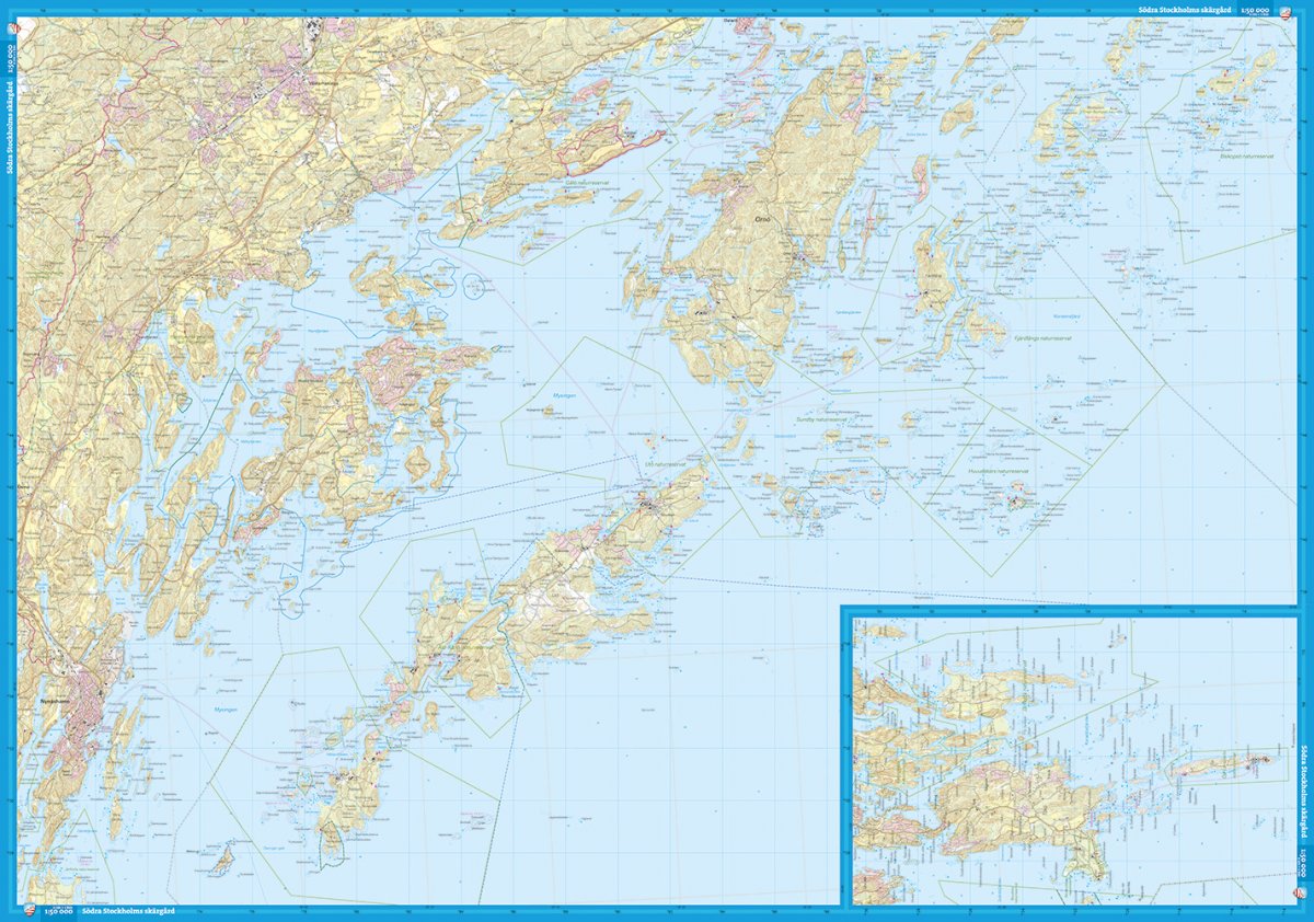 Dies ist die südliche unserer beiden Karten, die den gesamten Stockholmer Archipel abdecken. Die Karte deckt das gesamte Gebiet von Vaxholm und Möja im Norden bis Landsort im Süden ab. In unseren See- und Küstenkarten arbeiten wir mit Wanderwegen genauso gründlich wie in unseren Geländekarten, die Auswahl der Abschnitte ist jedoch an die Inselgruppen und größeren Gewässersysteme angepasst. Wir versuchen auch, mit Informationen zu ergänzen, die insbesondere für Paddler wichtig sind. Dabei kann es sich um Gelände und Fairways, Routen für den Schärenverkehr und andere interessante Dienstleistungen wie Lebensmittelgeschäfte, Trockentoiletten und Saunen oder Kanulifte, Frischwasser und Campingplätze entlang beliebter Paddelwege handeln. Wir sind zu dem Schluss gekommen, dass Tyvek® das beste Material für eine Karte ist. Sie besteht aus einer Kunstfaser, die die Karte absolut wasserunempfindlich und sehr reißfest macht. Eine Tyvek-Karte reißt nicht in den Falten und verliert auch nicht ihre Farbe, wenn Sie sie verwenden.